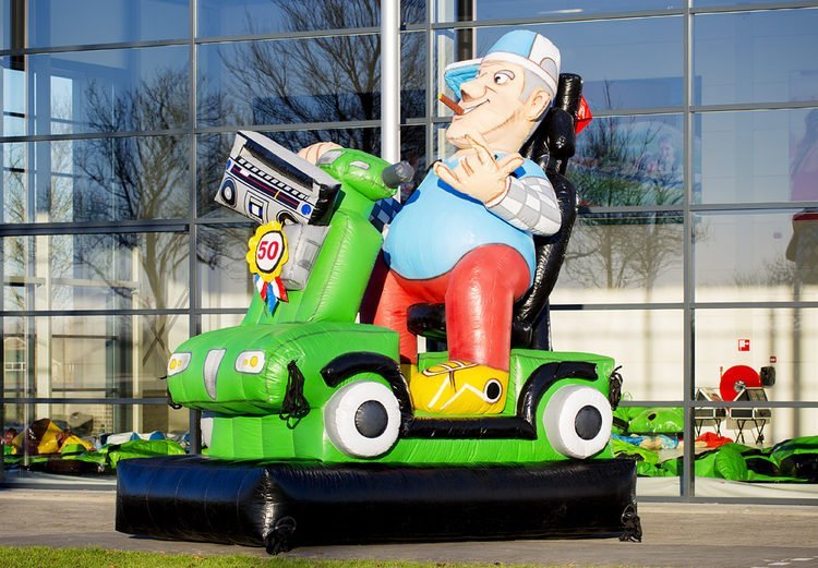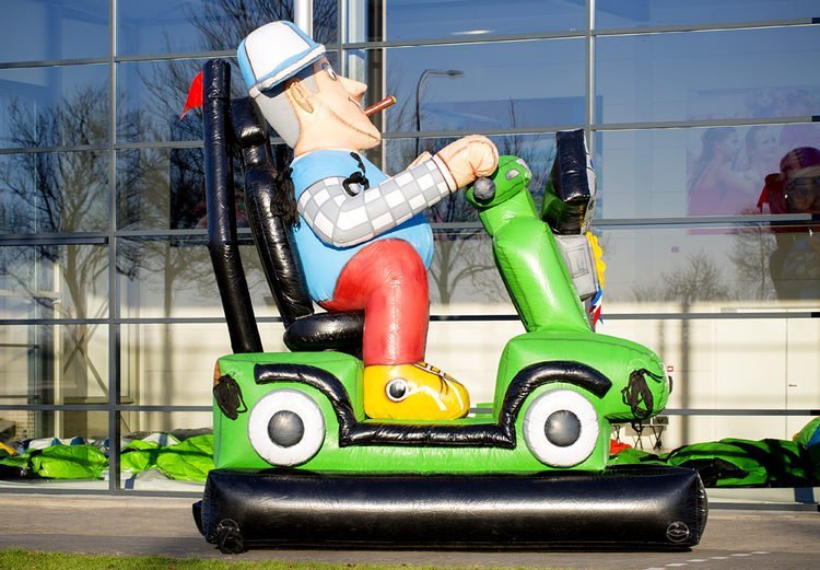 Het kost één enkele persoon nog geen 10 minuten om de Abraham met scootmobiel en al op te zetten. Daar zorgt de duidelijke handleiding die we erbij leveren wel voor. Ook in het pakket: materiaal om de circa 15 kilo zware pop te vervoeren, vergrendelmateriaal en de twee noodzakelijke blowers.